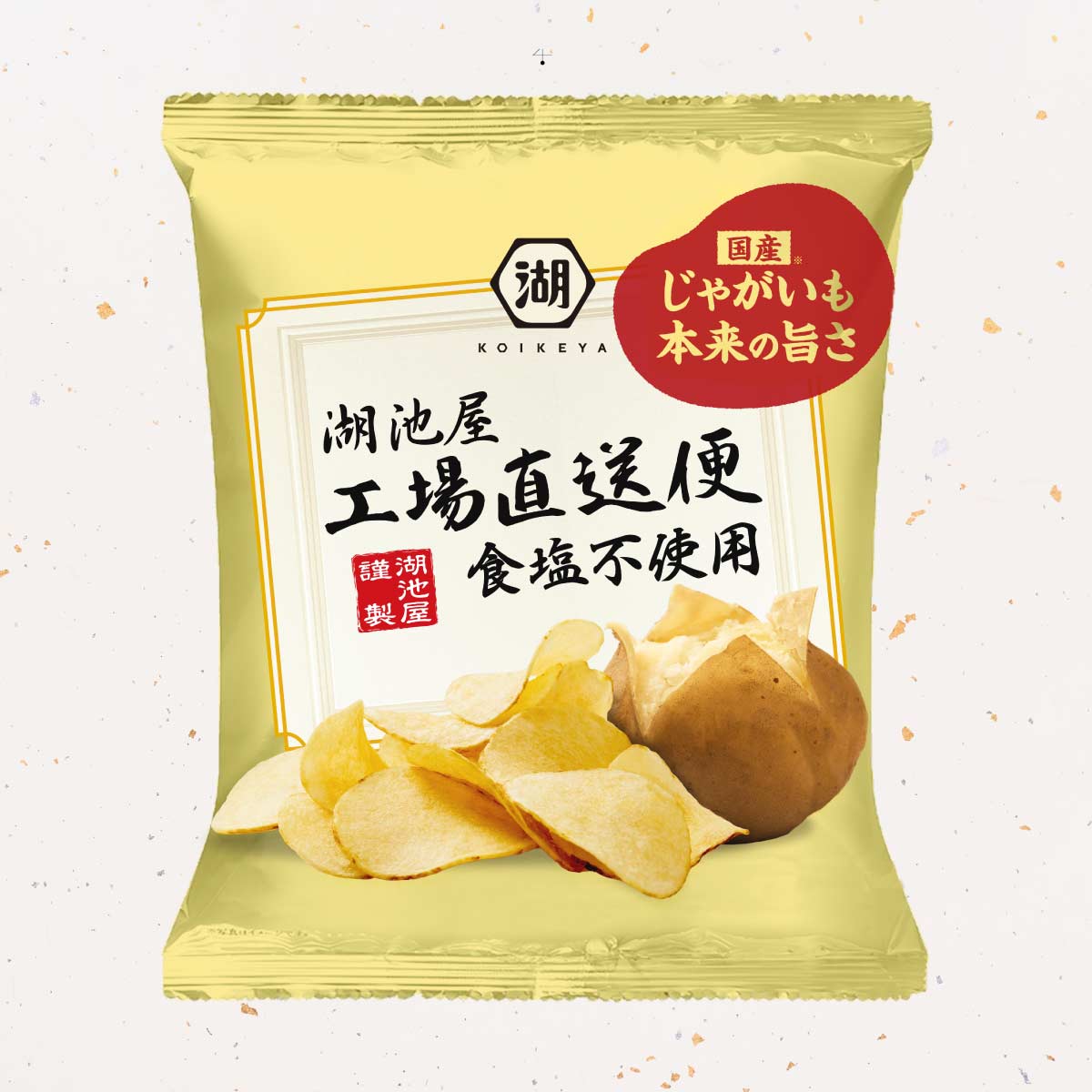 湖池屋揚げたて直送便は、生産から三日以内に出荷するポテトチップスです。揚げたてだからこそ新鮮で、じゃがいも本来の旨みが繊細に際立つ仕上がり。工場でしか味わうことが出来なかった特別な美味しさを、ぜひご家庭でお楽しみください。
