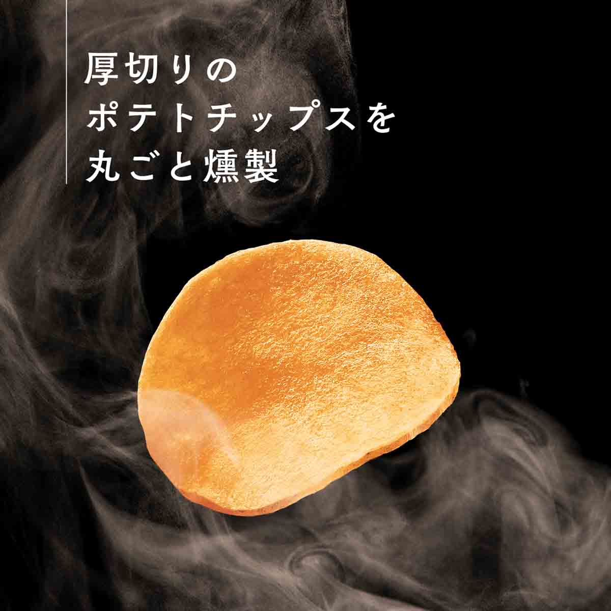 素材にこだわった国産じゃがいもの厚切りチップスを贅沢に丸ごと燻製。