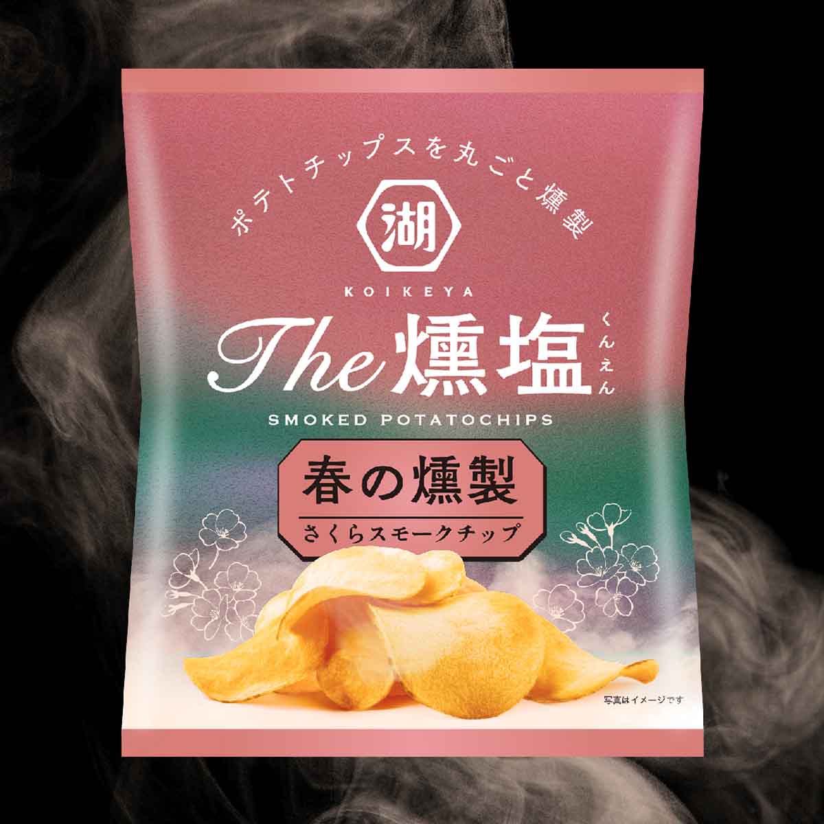 春限定の味わい「KOIKEYA The燻塩 春の燻製」は、東北地方の「大山桜」のスモークチップを使用。