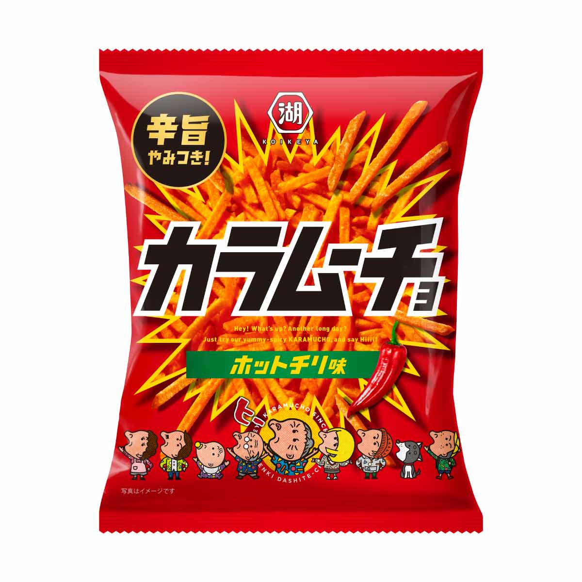 カラムーチョは開発担当者がアメリカを訪れた際、現地で流行していたメキシコ料理に着目して1984年に開発されました。ブランド名の「カラムーチョ」。辛いの「カラ」と、「もっと」を意味するスペイン語の「ムーチョ」を組み合わせることで、「辛いポテトチップスをもっとたくさん食べてほしい」という願いが込められています。