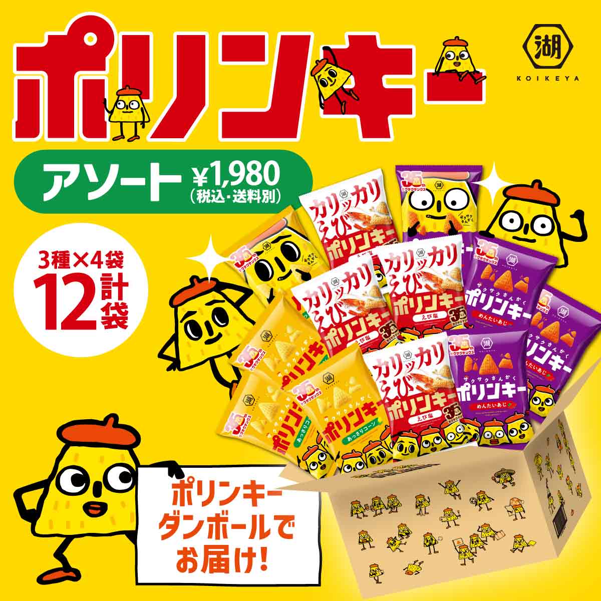 ポリンキーシリーズ全3種を一気に楽しめる!新商品「カリッカリえびポリンキー えび塩」も入ってます♪