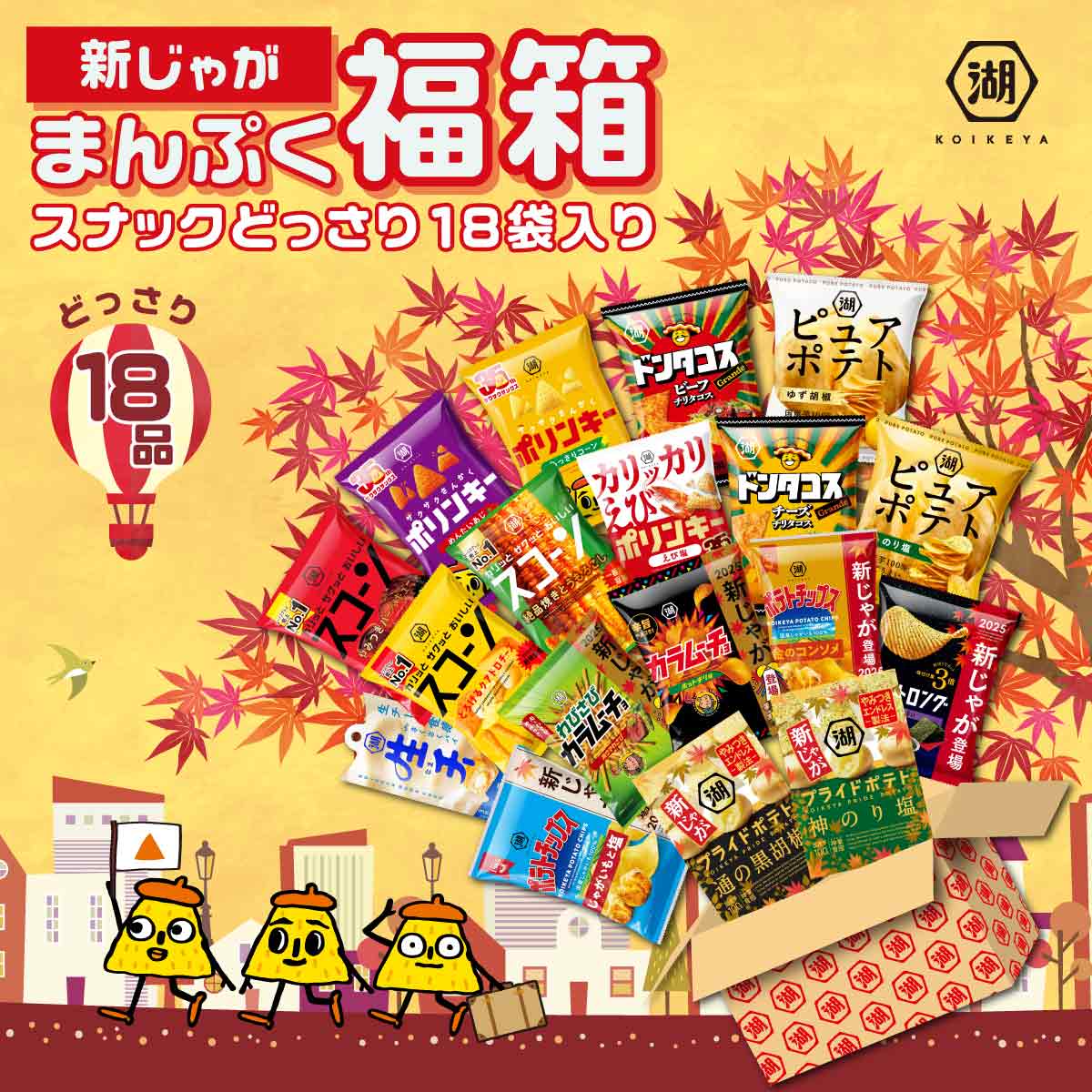 秋は新じゃがの季節!湖池屋の人気スナックを詰め合わせた、家族団らんのおやつにピッタリなアソートセットです♪