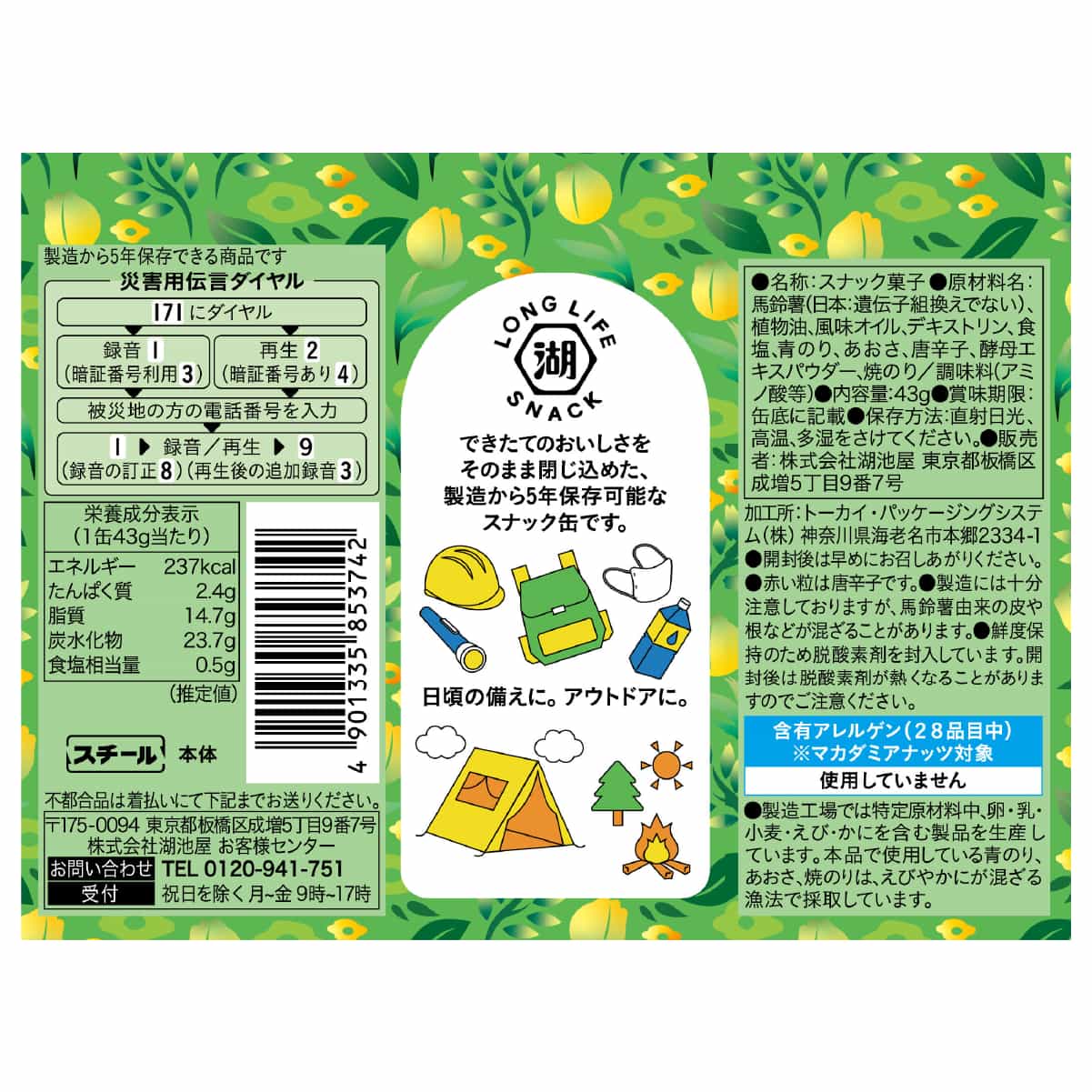 もしもの時の備えにおすすめな5年保存可能なポテチの防災缶、ローリングストックにもピッタリです!