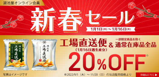 ※湖池屋オンラインショップ新春セールは2023年1月1日(日)から1月16日(月)までとなります。