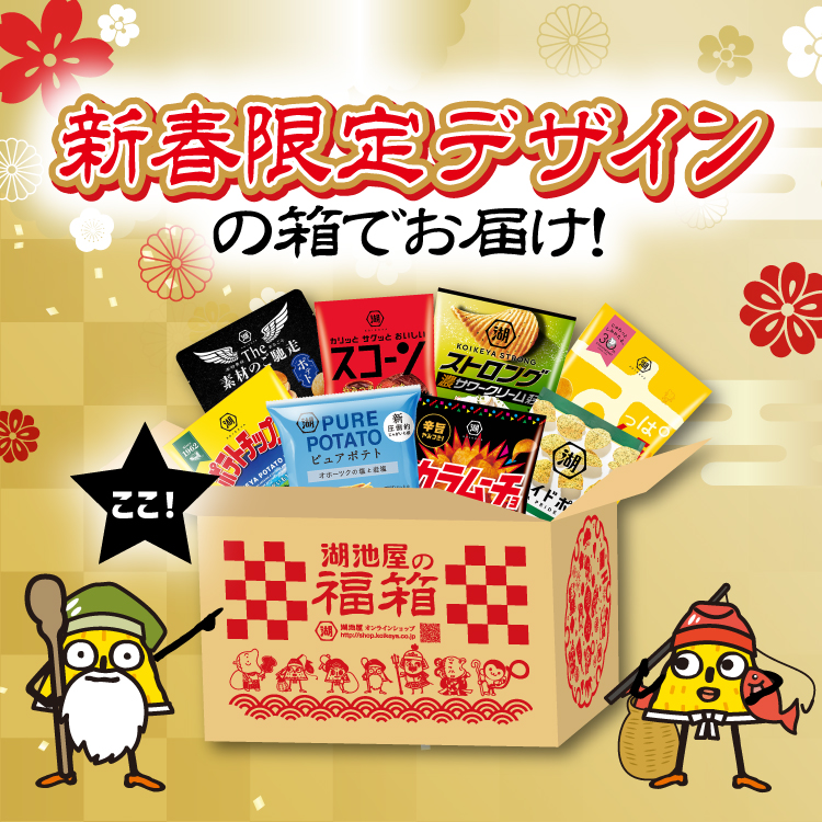 \\こちらもおすすめ// 湖池屋オンラインショップでは、 お正月シーズンに大人気のアソート、 「湖池屋の福箱2024」を販売中! ![]() 人気スナックをぎゅーーーーーっと21品詰め込んで、 お値段はなんと! 超特価の 【1,980円(税込)】!!!! 1月限定のデザインBOXでお届けします♪ ![]() お酒にも、ジュースにもピッタリ合う「湖池屋福箱2024」は、 家族団らんのひと時にもお土産にもピッタリですよ◎ 「湖池屋の福箱2024」は【残りわずか300セット】となります・・・!!! 気になる方は今すぐご確認くださいねヾ(*゜○゜)ノ